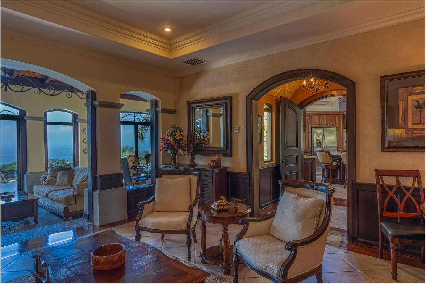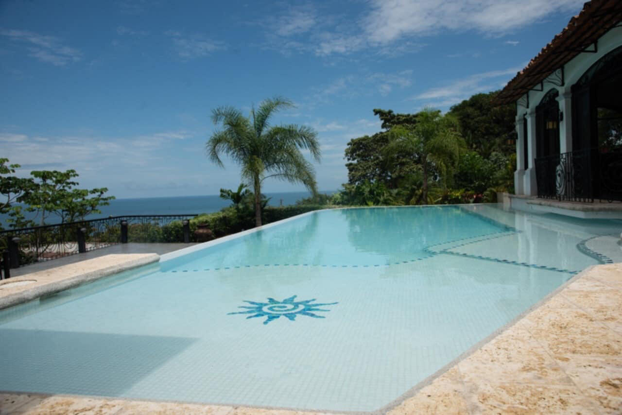 Offering panoramic views, 180-degrees of the Pacific Ocean, this vacation villa features elegant colonial style architecture and decor. Casa Eleganza’s living space encompasses more than 4,300-square feet, and can accommodate 8 guests in the 4 bedrooms and 2.5 bathroom villa.